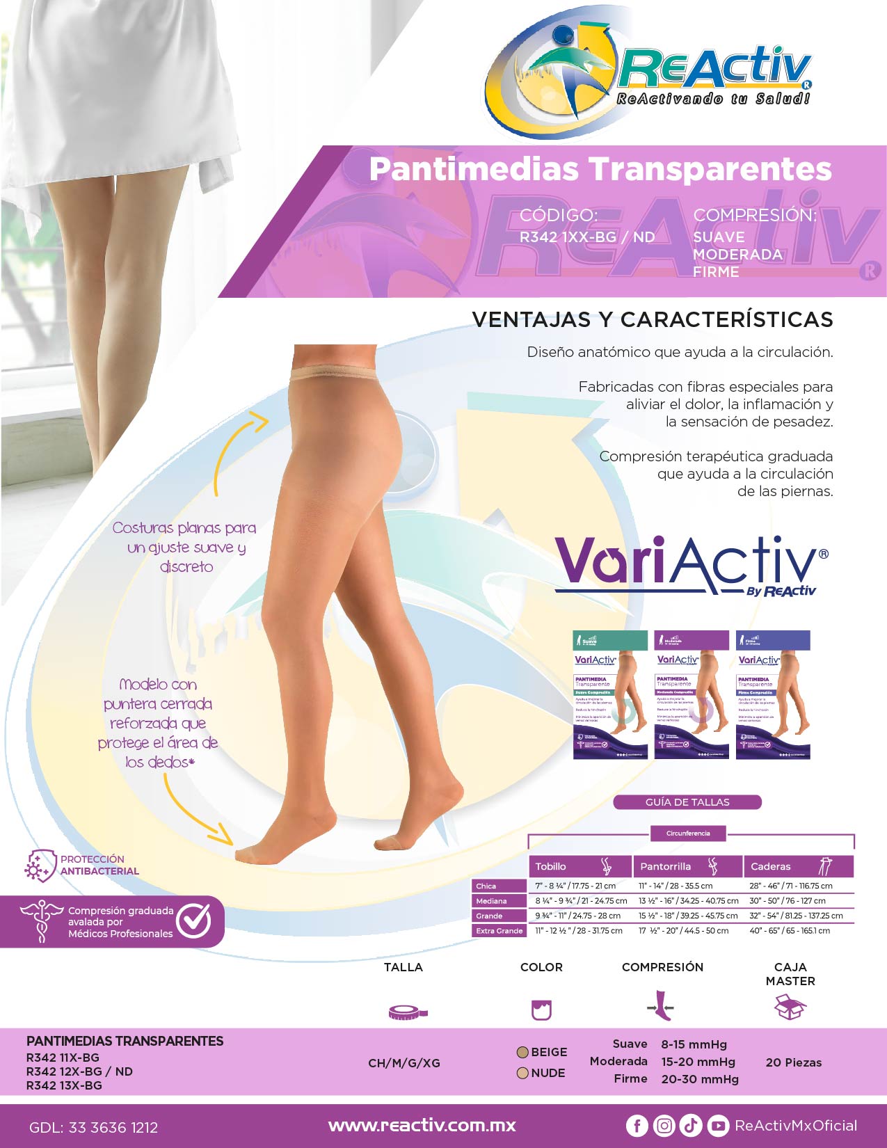 Pantimedia Transparente VariActiv Suave Compresión 8-15 mmHg Color Beige, Xg